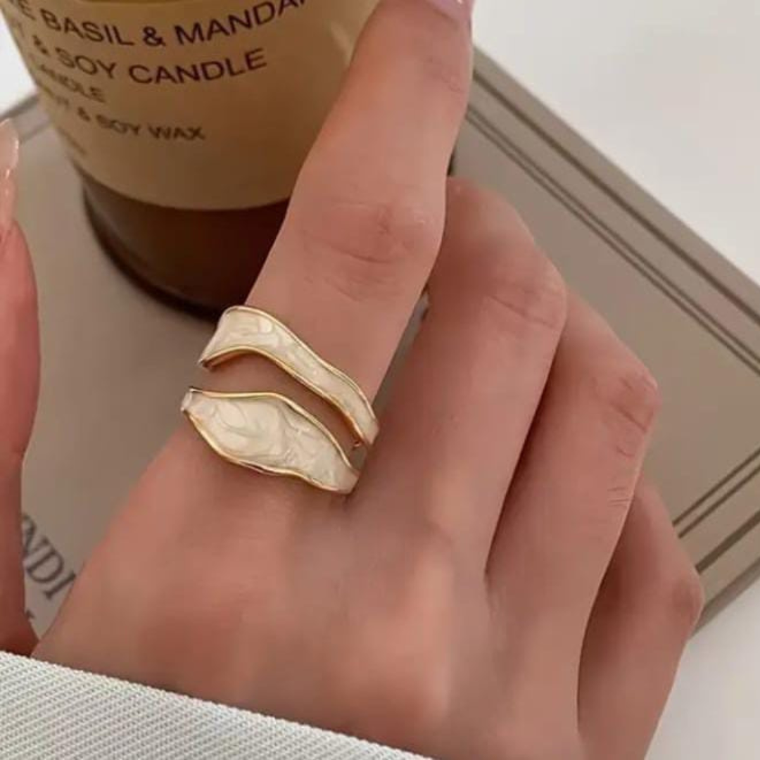 Artistic wavy band ring with a unique open style.
